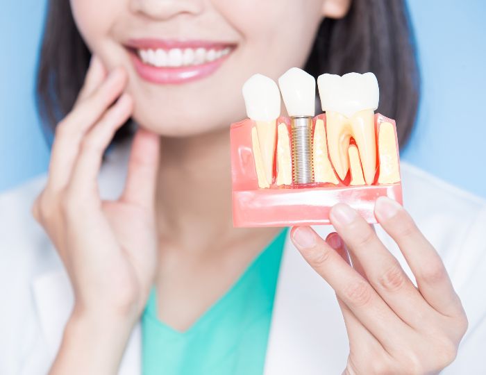 顎の骨に人工の土台を入れて、その上に歯を固定する治療。取り外しの必要がありません。